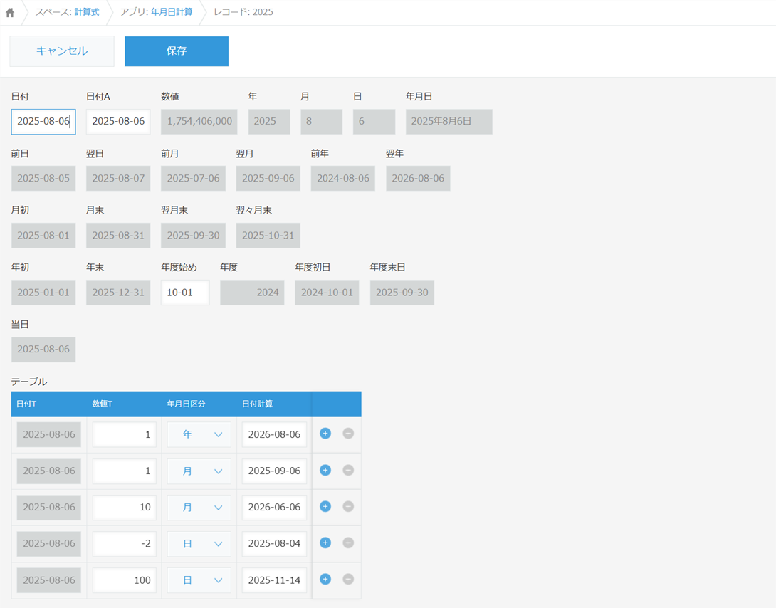 計算式プラグイン を使えば、日付を元にした前日・翌月・年度末などさまざまな計算が簡単にできます。