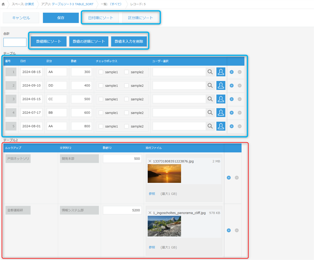 - ルックアップ/添付ファイルを含むテーブルは、レコード保存後イベントでソートします。
