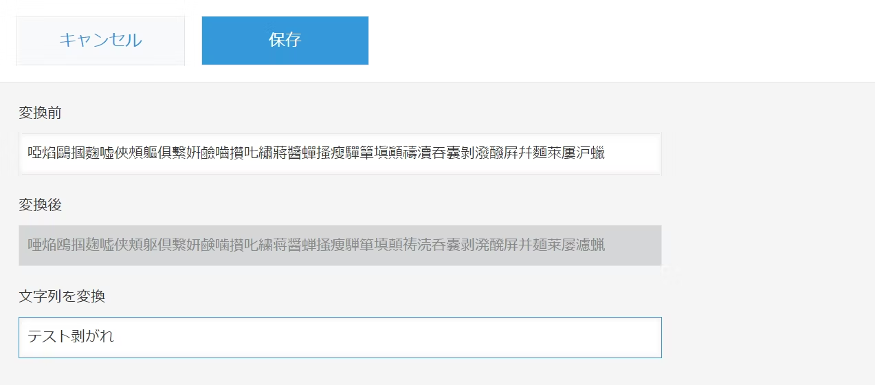 入力中にそのまま変換できる「文字列を変換」フィールドと、比較用の「変換前/変換後」を用意します。