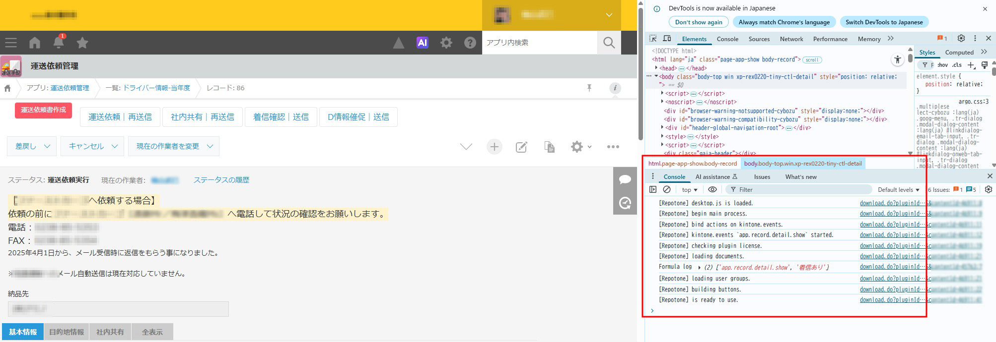 ・Chromeで該当アプリを開き、F12を教えて開発者コンソールを開く