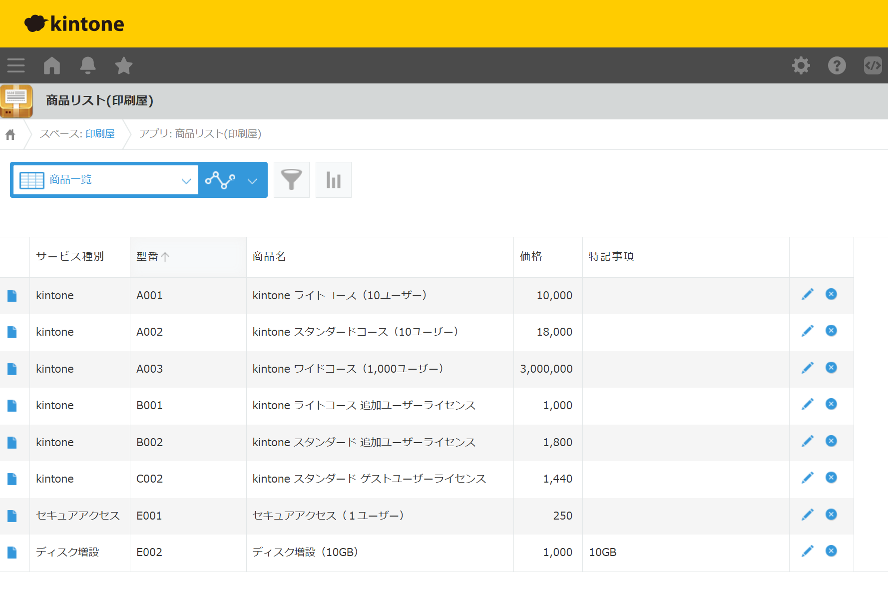 - kintone に 印刷屋スペースを作成