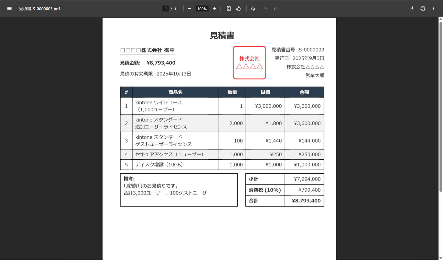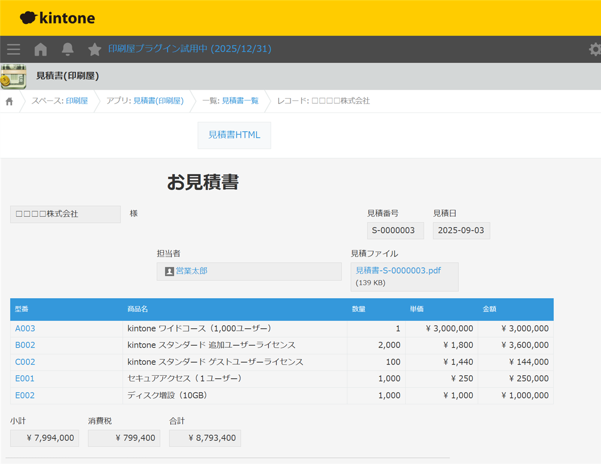 印刷屋プラグインを使って、kintone の見積書アプリから見積書を PDF 出力してみましょう。