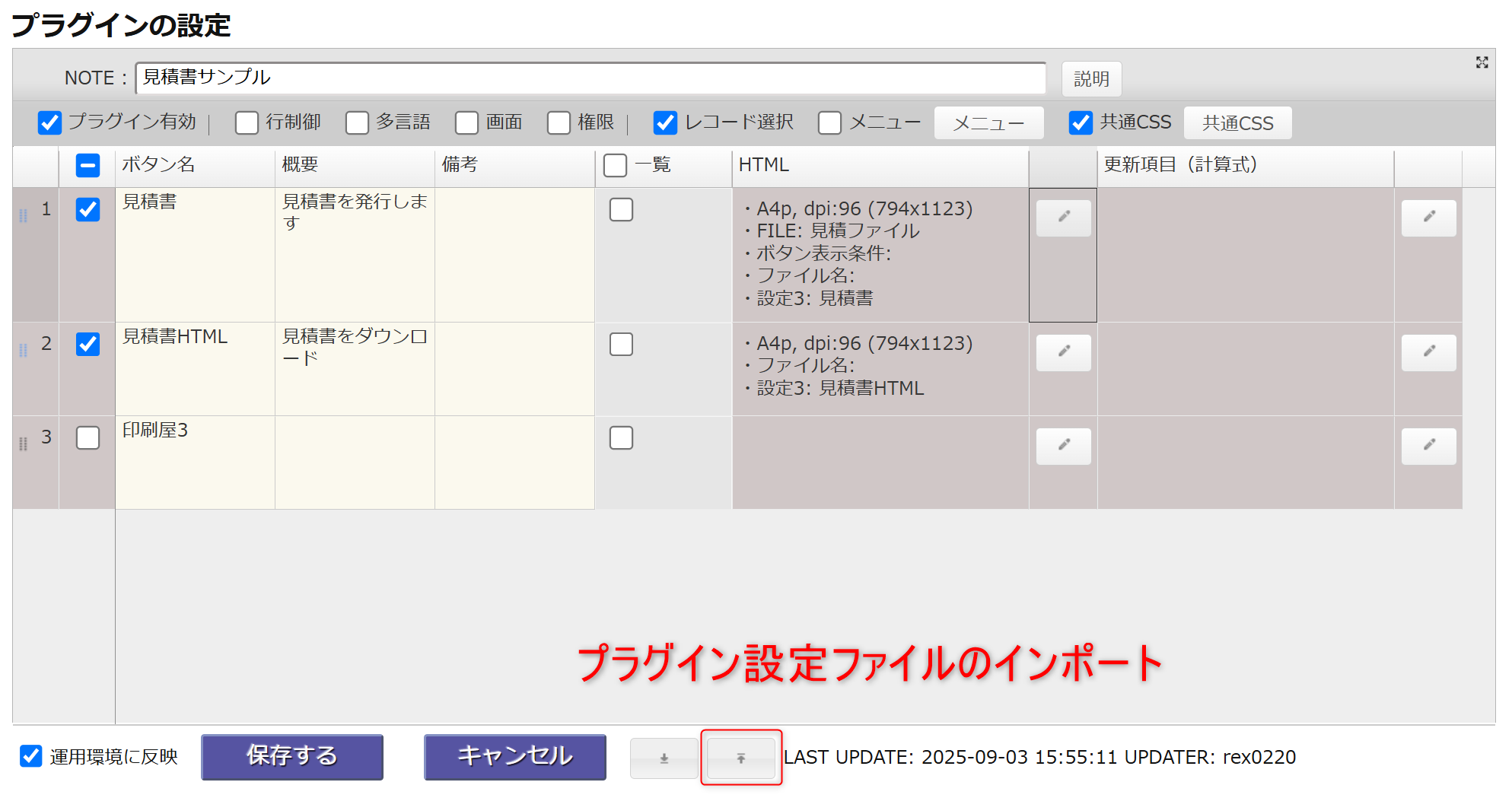プラグイン設定をインポート