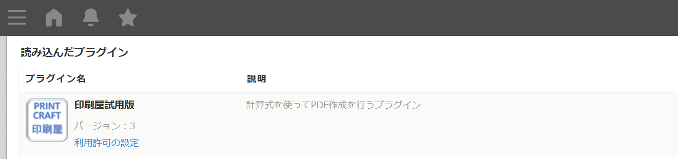 - アプリの設定画面で 印刷屋プラグインを追加