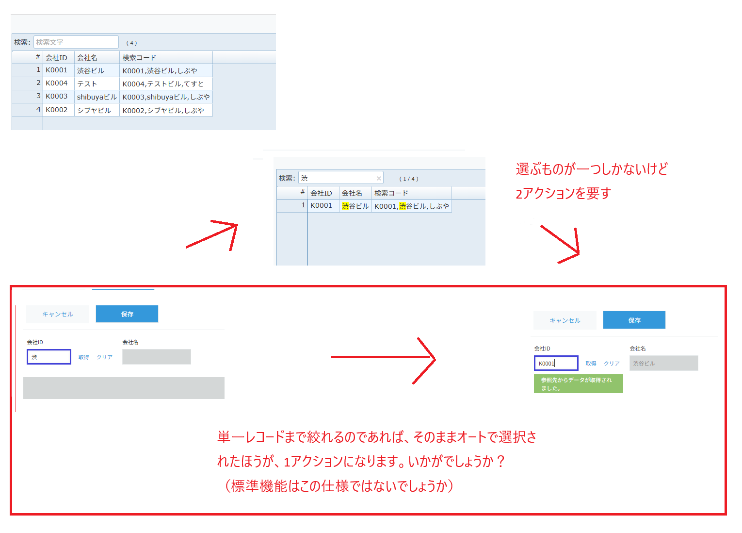 そもそもこの機能があるおかげで、単一レコードまで簡単に絞り込める道筋ができ、37・38のバージョンアップで操作性が向上したことから、今回の提案につながりました。