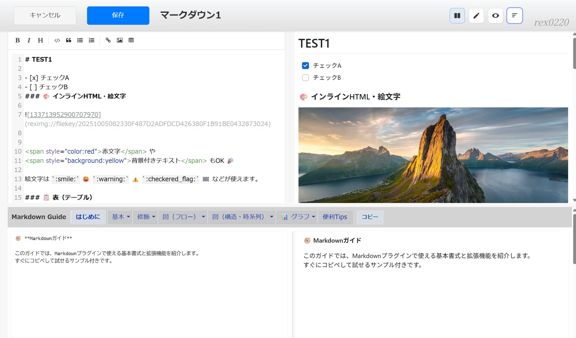 ※ Ver.2 変更点 ・Mermaid バージョンアップ Ver.11.8.0 → Ver.11.12.0 ・マークダウンガイドのデザイン変更とダイアグラム例を追加