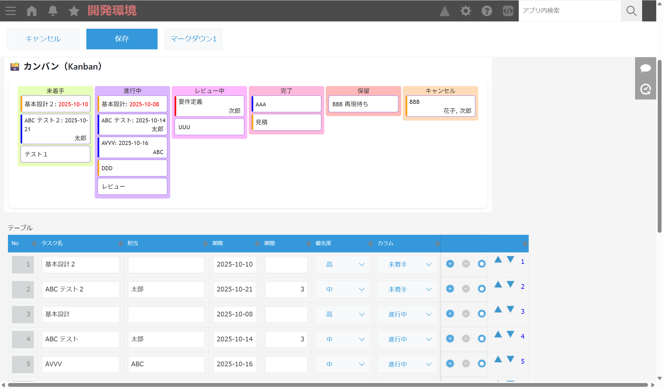 マークダウンプラグインと計算式プラグインの連携で、カンバンを表示してみます。