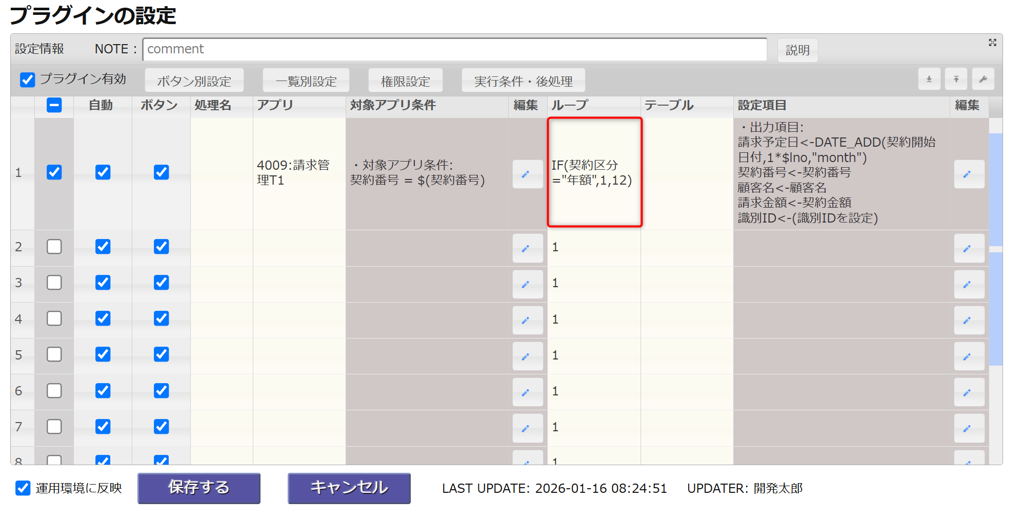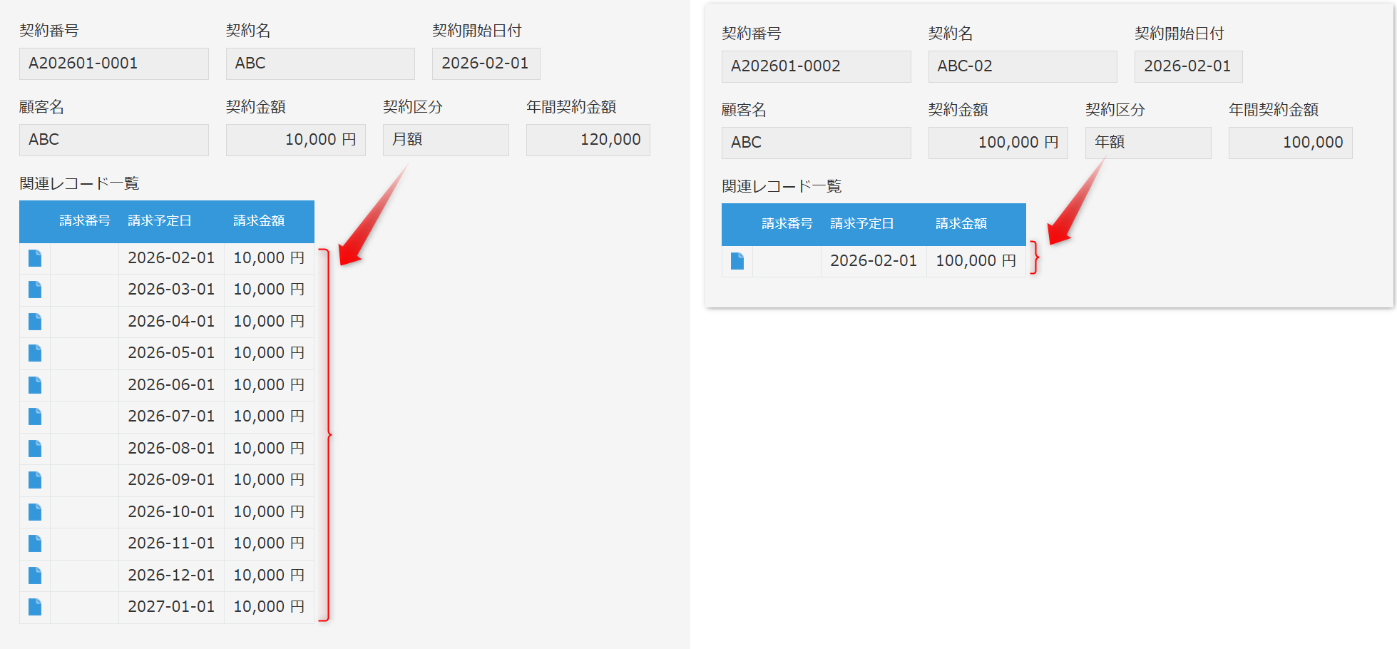 契約管理アプリから契約区分(月額・年額)に応じて、請求管理アプリのレコードを生成してみます。 ループの計算式で、生成するレコードを制御できます。