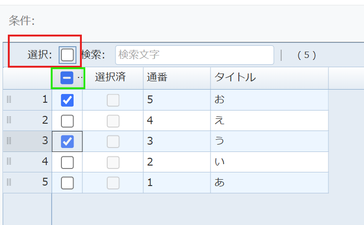 ②タイトル行のチェックボックスについて