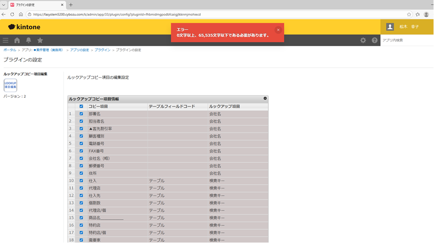 すでに rex0220 ルックアップコピー項目編集プラスプラグイを使っているのですが、突然エラーが出て全ての項目が編集できなくなりました。