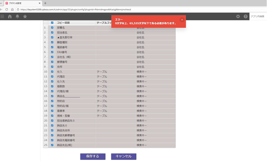 ②設定を開いて保存をしようとすると、文字数制限のエラー