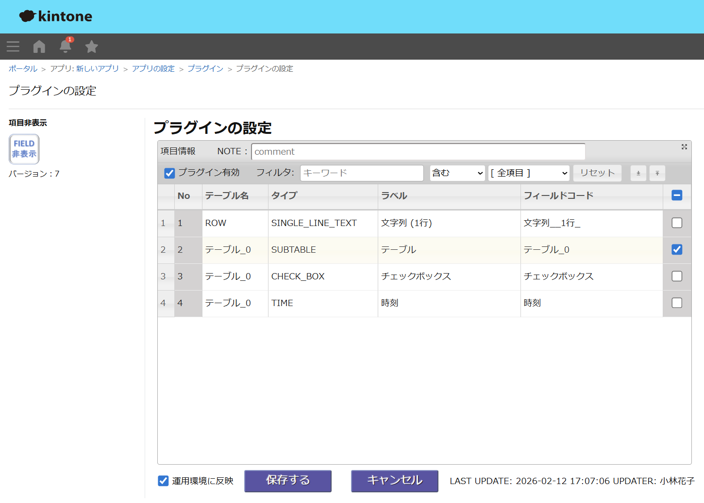 項目非表示プラグインでテーブルを非表示にすると、テーブル自体は非表示にされますが、テーブル名が表示されてしまいます。