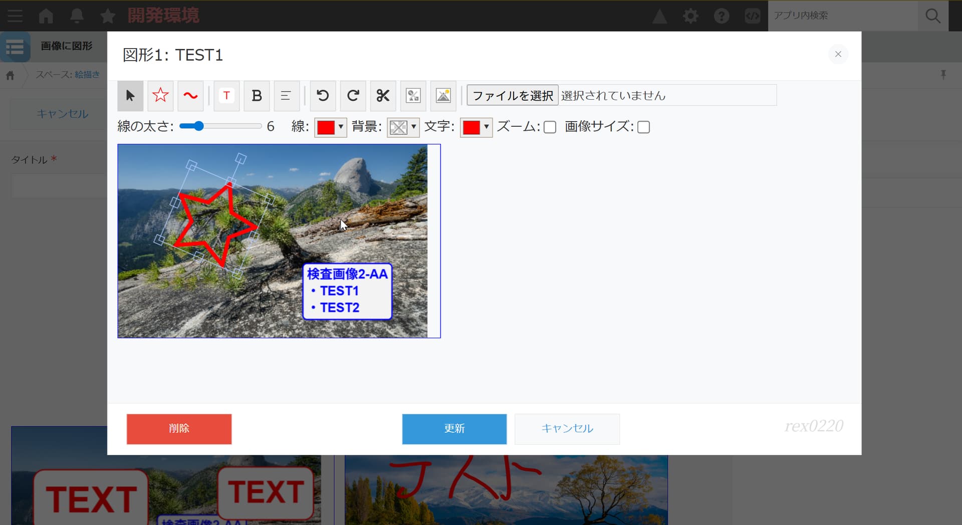 シェイプ!プラグインの特徴 ・kintone アプリで、画像に図形、手書き、テキストを描くことが出来るプラグインです。